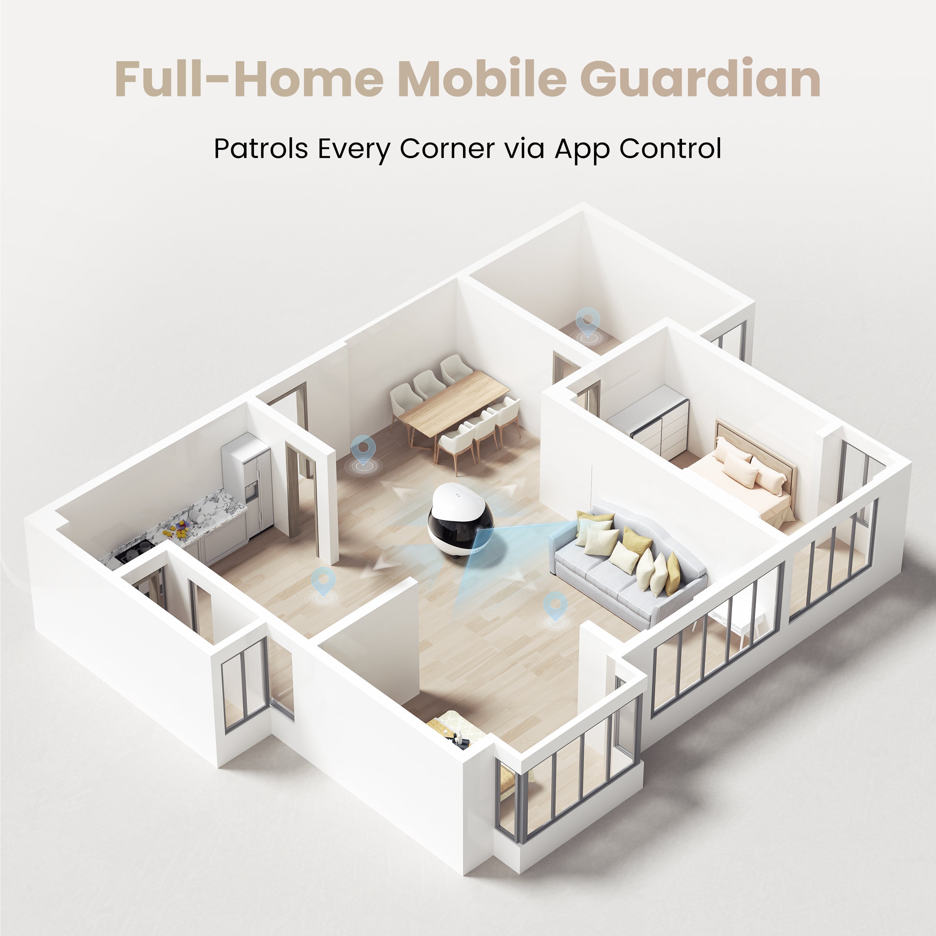 As a security robot, it features 24-hour Video Recording and Fixed-Point Surveillance modes. Its Timed Video Recording pairs with Motion Detection Alerts for 24/7 monitoring.
