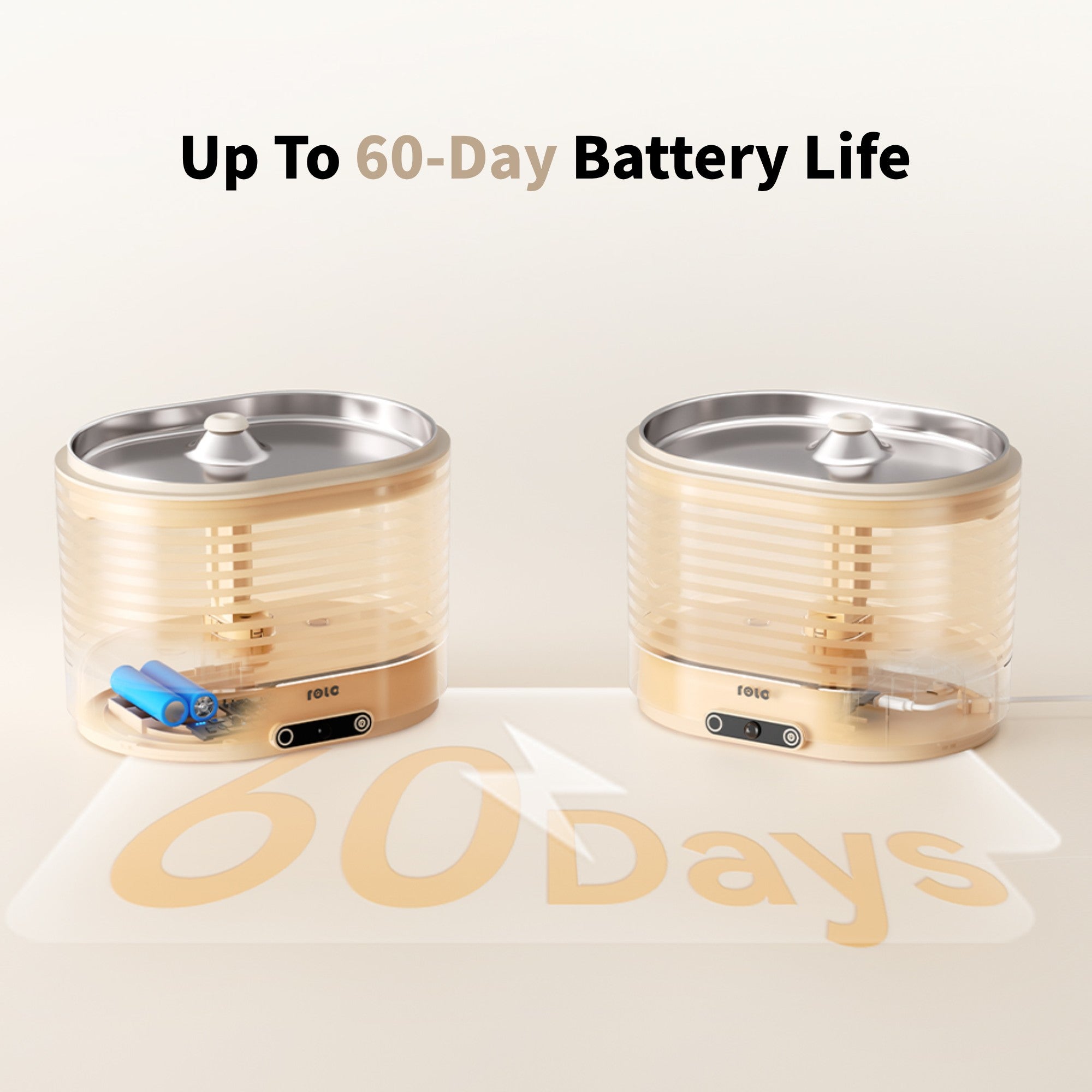 The ROLA Smart Pet Water Fountain offers next-gen hydration with wireless pump design and 3-layer filtration, ensuring clean and fresh water for your pets. Featuring magnetic induction technology, it isolates water from electrical components, guaranteeing safety. With up to 60-day battery life, customizable water flow modes, and smart app monitoring, you can track hydration and receive real-time notifications. Whisper-quiet operation and 2L capacity make it perfect for pets' daily hydration needs, promoting health and convenience for both you and your pet.